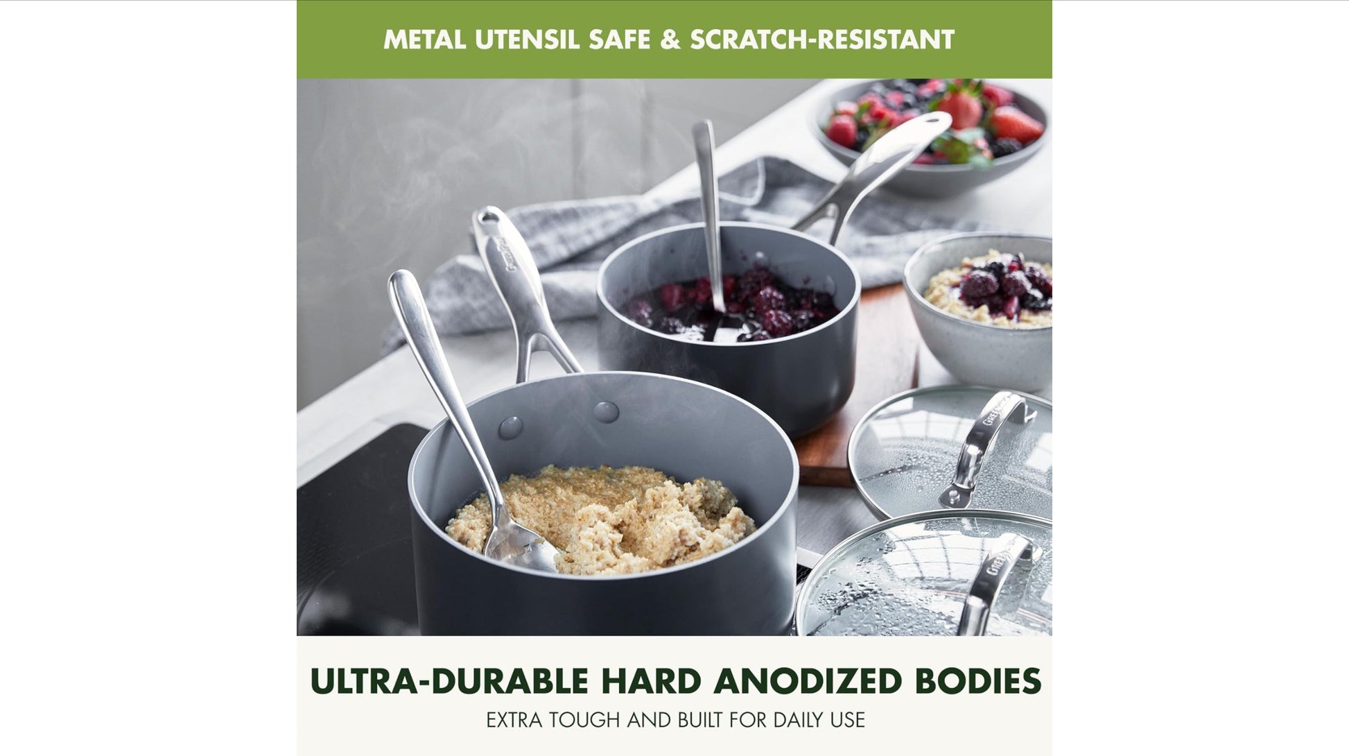 - HEALTHY CERAMIC NONSTICK: GreenPan’s toxin-free ceramic coating is completely PFAS-free for effortless food release and safer cooking.