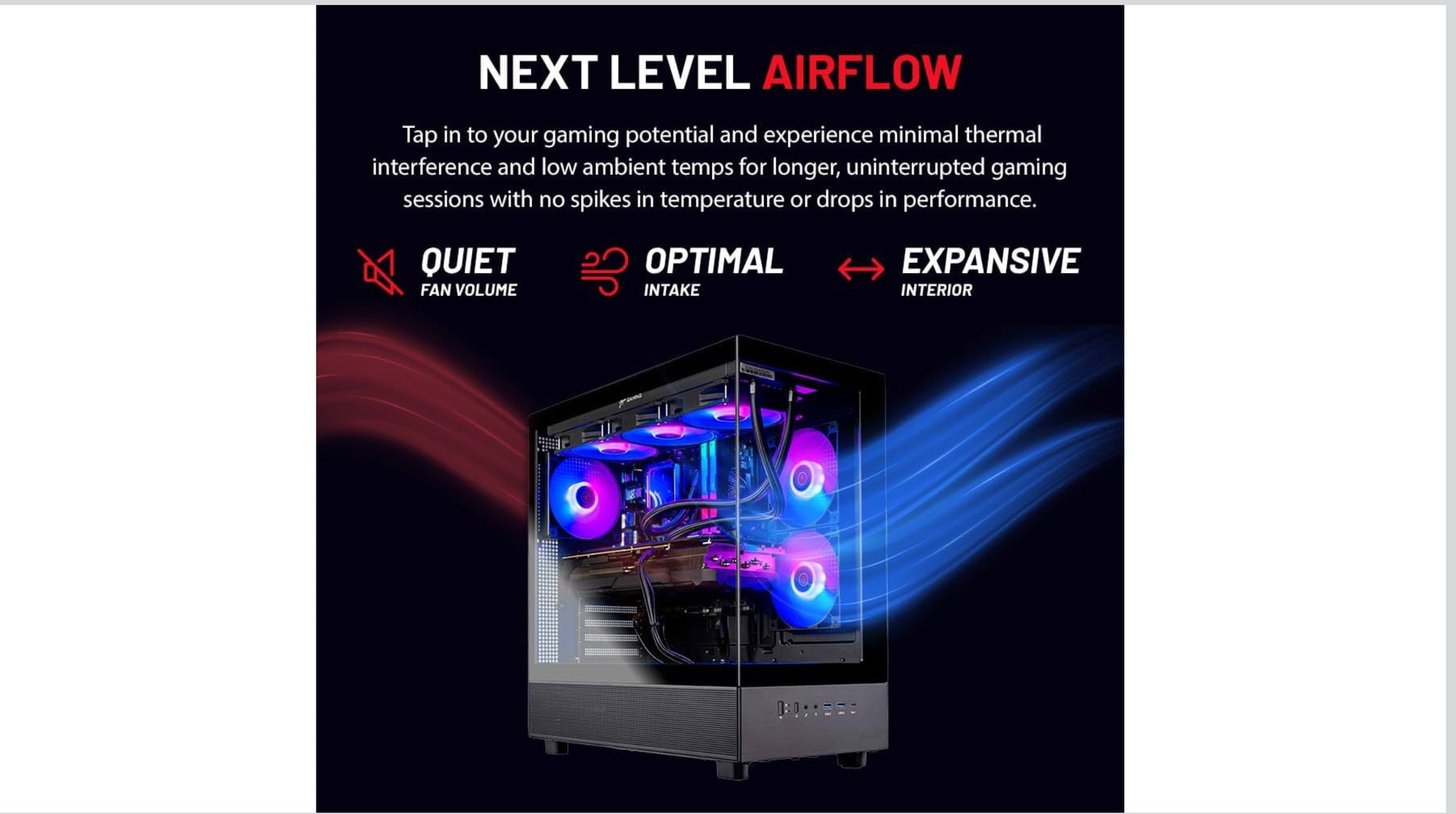 - High-spec AIO liquid coolers used, delivering unmatched cooling performance for a perfect operational experience and unparalleled cooling performance. With hardware unrestricted by temperature limits, you can unleash its full potential. Whether gaming, creating, or working, you'll never suffer from thermal throttling again. | Skytech Azure Gaming Case with Tempered Glass, Black | 1 Year Warranty on Parts and Labor | Free Technical Support | Assembled in the USA